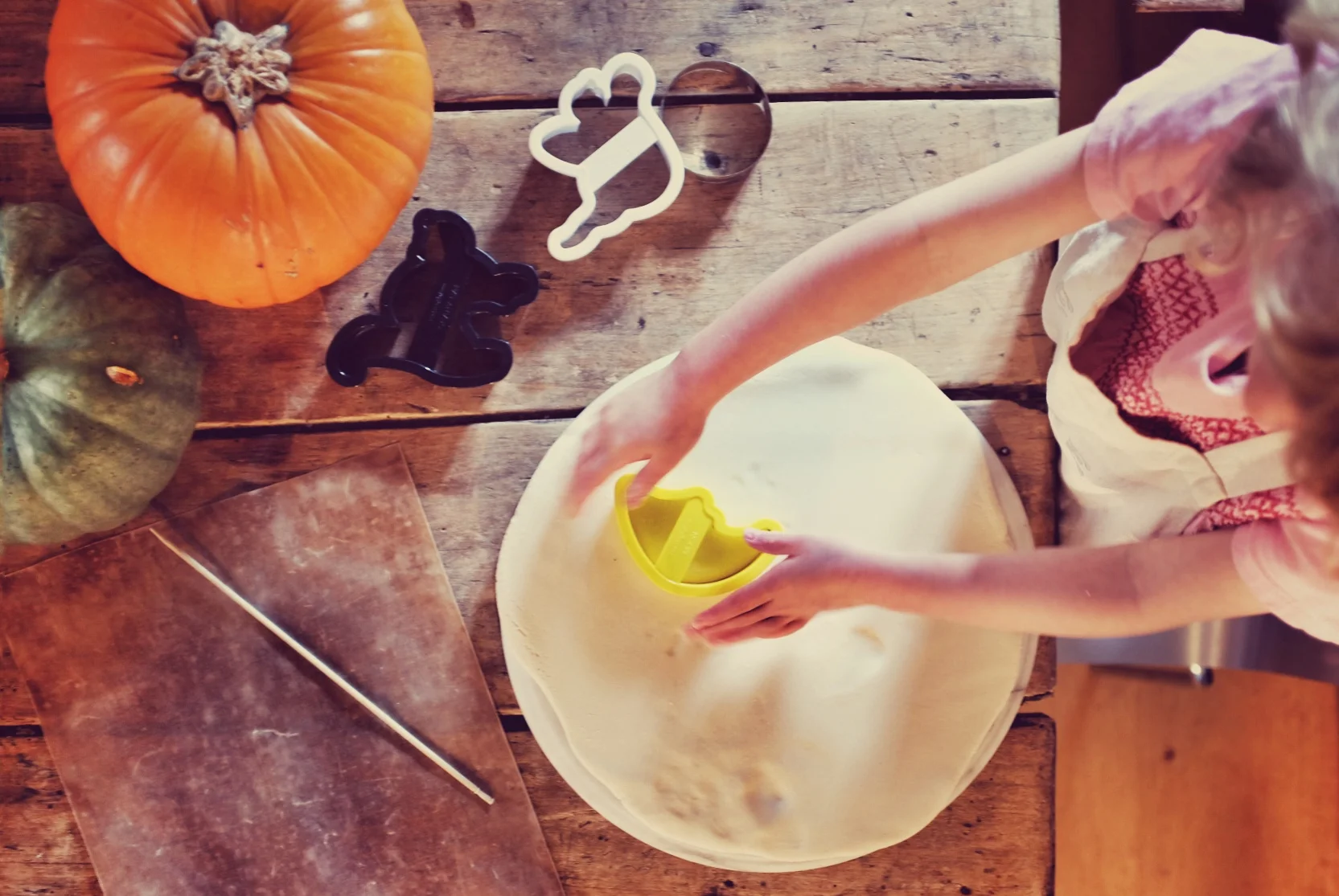 The origins of Trick or Treating came from the tradition of handing out Soul Cakes to children or the poor who might come knocking on Saints Day, the 1st or 2nd of November. A simple spiced biscuit, a bit between a scone and a shortbread, they would make a nice bit of baking to do with children